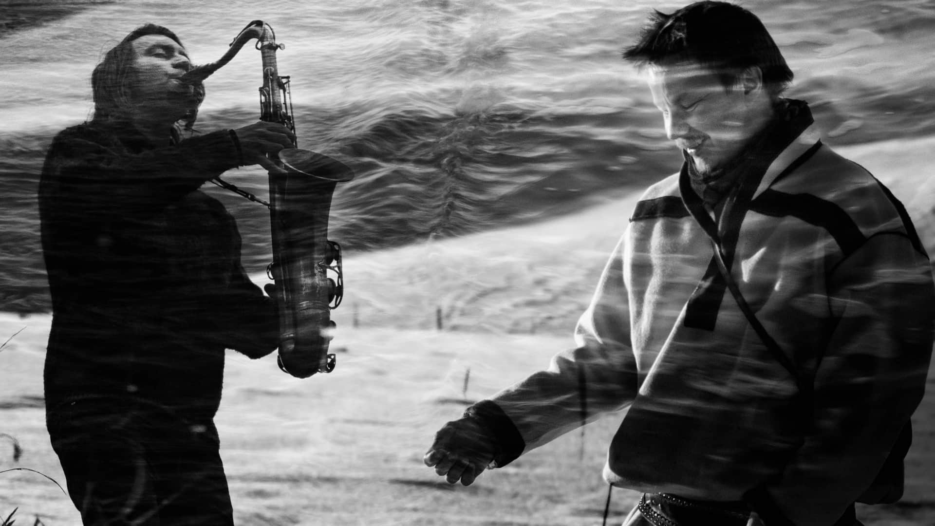 Saamelaisen runoilijan Niillas Holmbergin ja Emma-palkitun saksofonistin Pauli Lyytisen yhteinen ääni kertoo kuulijoille maisemista, joissa rantojen vesiraja nousee ja laskee.