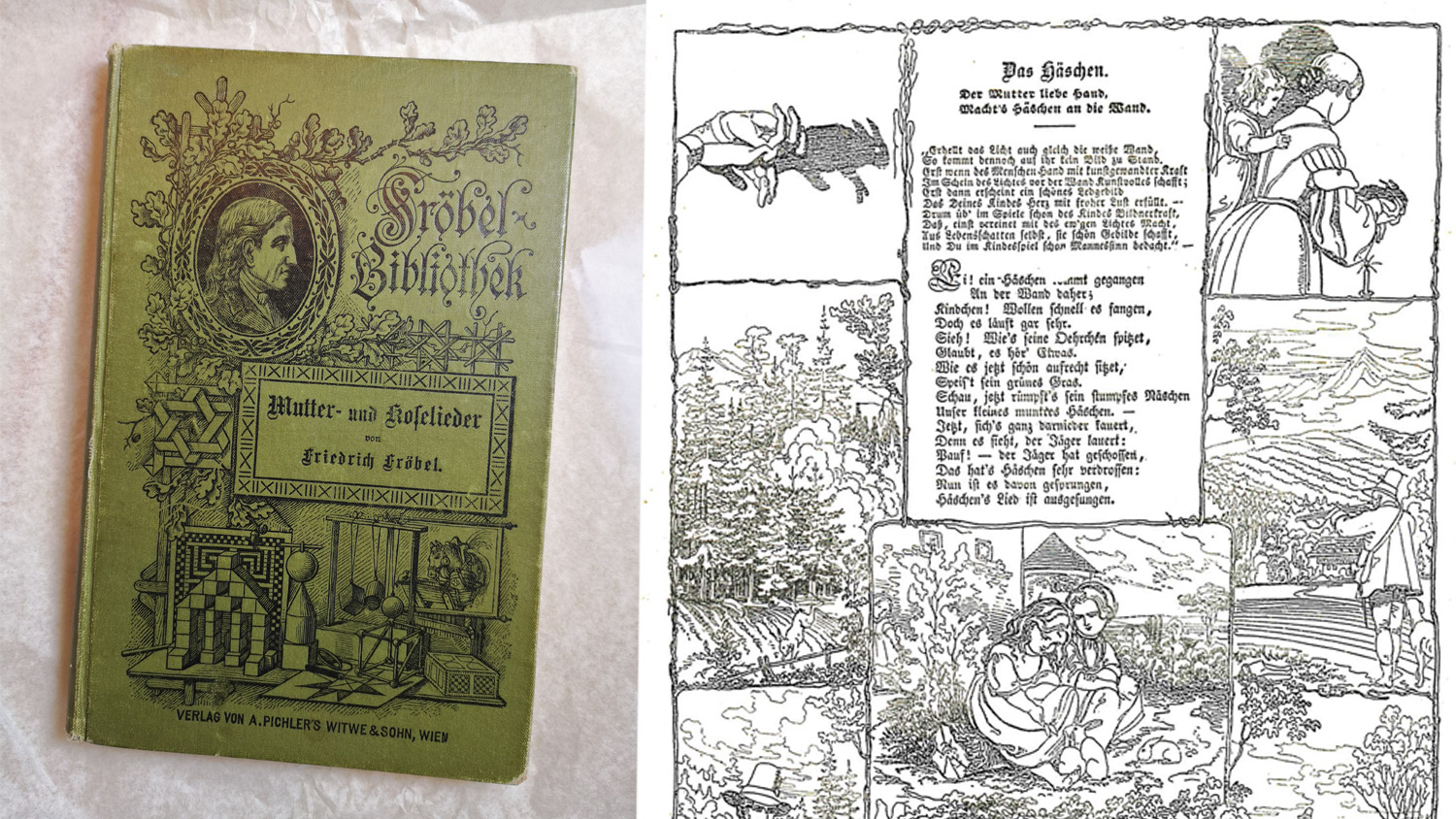 Avoimella lyhytopastuksella aiheena pedagogi Friedrich Fröbelin (1782–1852) tekemä Mutter- und Koselieder laululeikkikirja äideille.