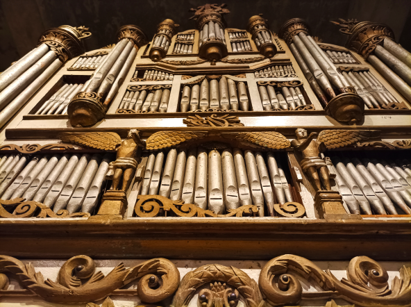 Sibelius Museum’s underground exhibition room, called the Organ Hall, exhibits keyboard instruments. The exhibition features – in addition to organs – a rare keyed monochord and a grand piano that once belonged to the 19th century author, poet and historian Zachris Topelius.