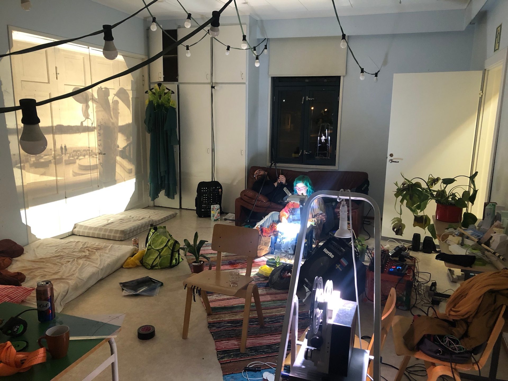 The Flying Garden working group’s film performance reflects on the history of houseplants and our everyday relationships with tropical plants kept indoors. The film is shown on 8mm film, which has been developed using plant chemicals from coffee consumed during the creation of the work and roasted in Eurajoki. Instead of a conventional film experience, the screening expands into a performance experienced in the moment.