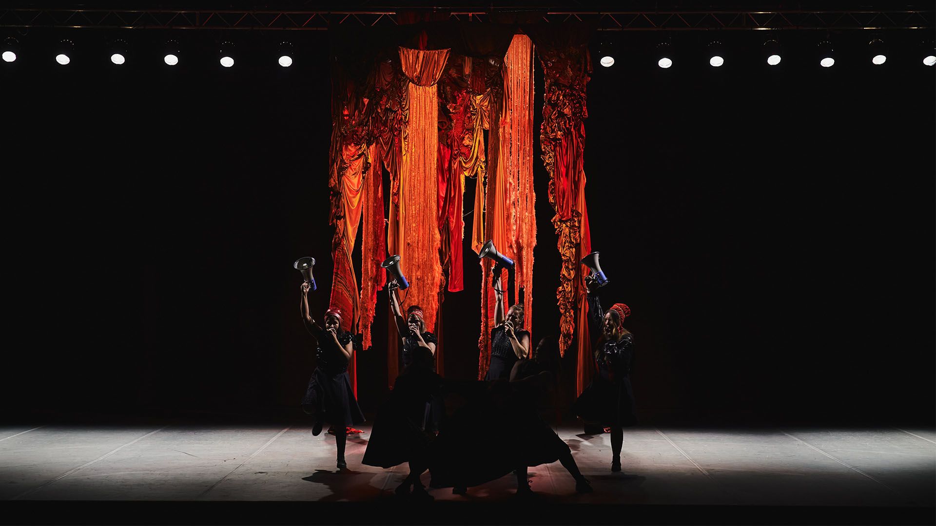 The piece is created for seven female performers from diverse backgrounds, who bring their own stories, bodies, and voices to the stage. Composer and yoik professor Frode Fjellheim has composed a multi-layered yoik that serves as the driving force of the performance. Fjellheim highlights the versatility of yoik and introduces a new approach to this traditional musical form.