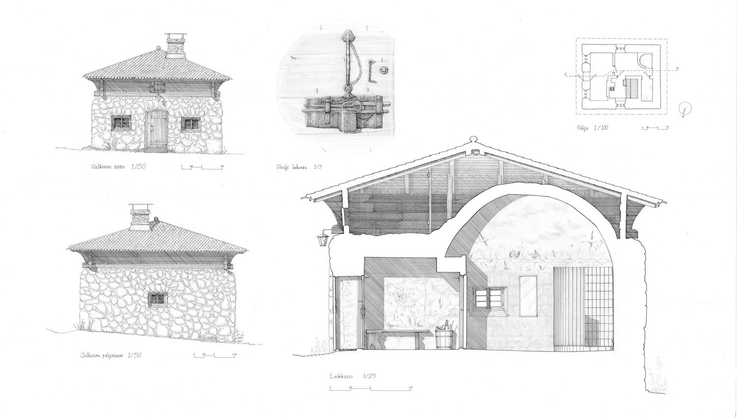 Huhkojärven tilan sauna. Piirustus: Venla Saarela