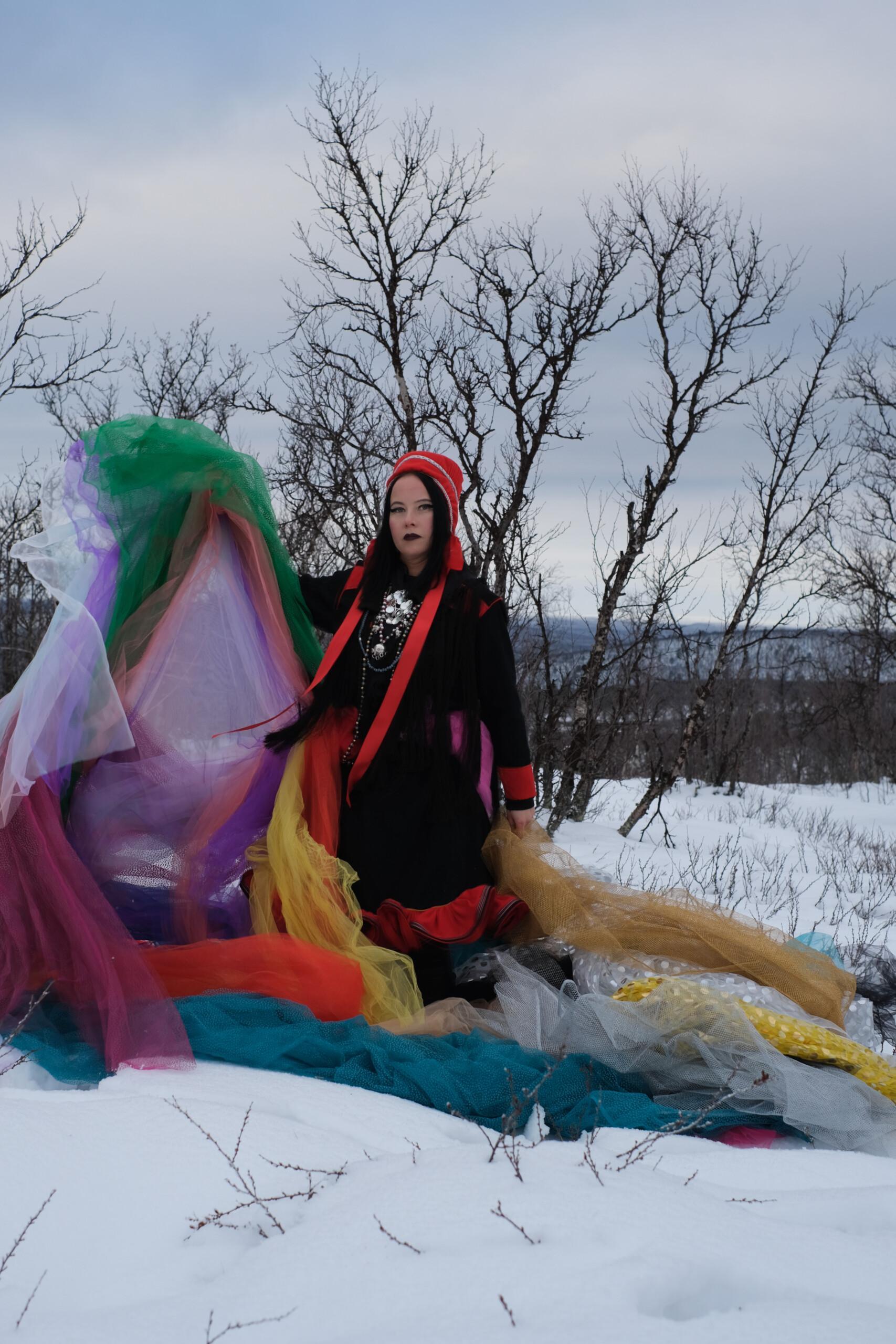 Jenni Laitin ja Lada Suomenrinteen yhteisnäyttely Alku-utopiat kuvaa saamelaismaailmojen loppuja ja alkuja, arktisen maiseman katoavuutta ja esivanhempien läsnäoloa sekä avaa mahdollisuuksia kulkea maailmanloppujen läpi kohti uusia alkuja.