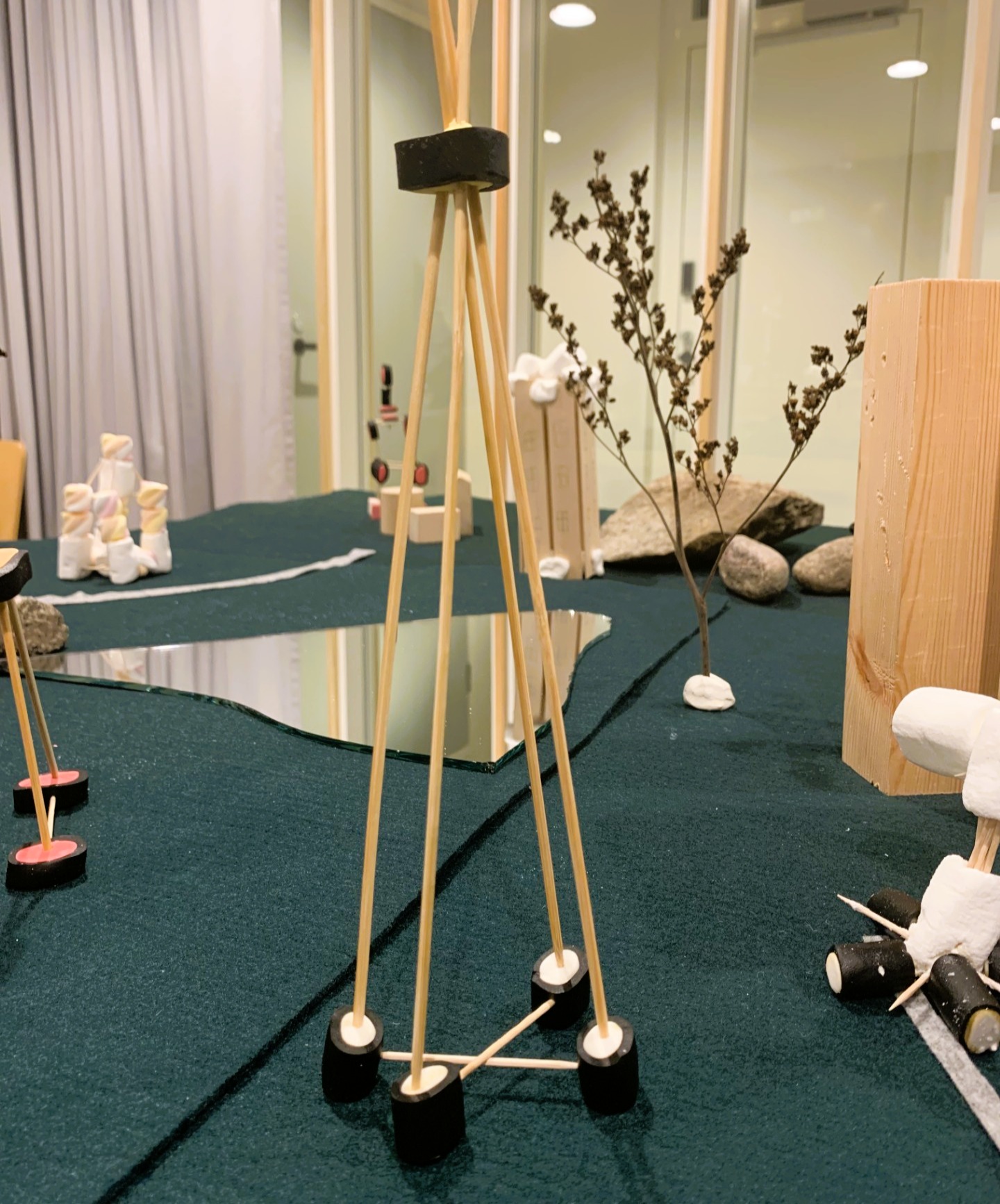 Avaruussillan avulla voi matkustaa toiseen paikkaan. Kuvitellaan ja rakennellaan uudenlainen maailma! Rakennetaan avaruudenasumuksia tai -aluksia, satelliitteja ja avaruussiltoja uuteen yhteiseen maisemaan. Kokeillaan ja leikitellään muodoilla ja rakenteilla! Avaruusrakenteita tehdään karkeista ja erilaisista puumateriaaleista.