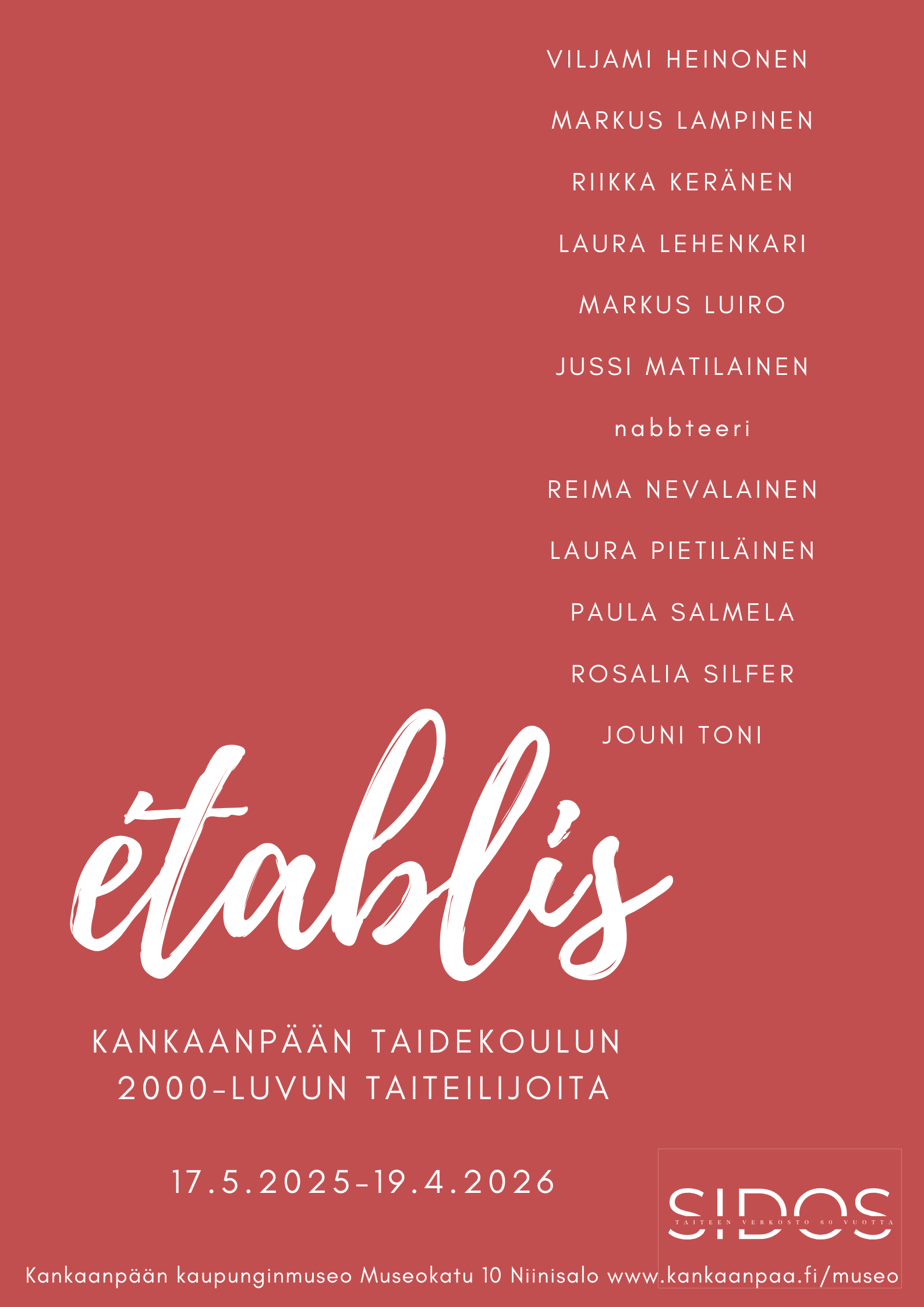 Établis on nykytaidenäyttely, joka esittelee SAMK Satakunnan ammattikorkeakoulun Kankaanpään taidekoulusta 2000-luvulla valmistuneiden ja taidekentällä taiteilijana asemansa vakiinnuttaneiden nykytaiteilijoiden teoksia. Näyttelyn taiteilijat ovat Viljami Heinonen, Markus Lampinen, Riikka Keränen, Laura Lehenkari, Markus Luiro, Jussi Matilainen, nabbteeri, Reima Nevalainen, Laura Pietiläinen, Paula Salmela, Rosalia Silfer ja Jouni Toni. Näyttely on osa Kankaanpään taidekoulun ja Kankaanpään taidyhdistyksen 60-vuotisjuhlavuotta.