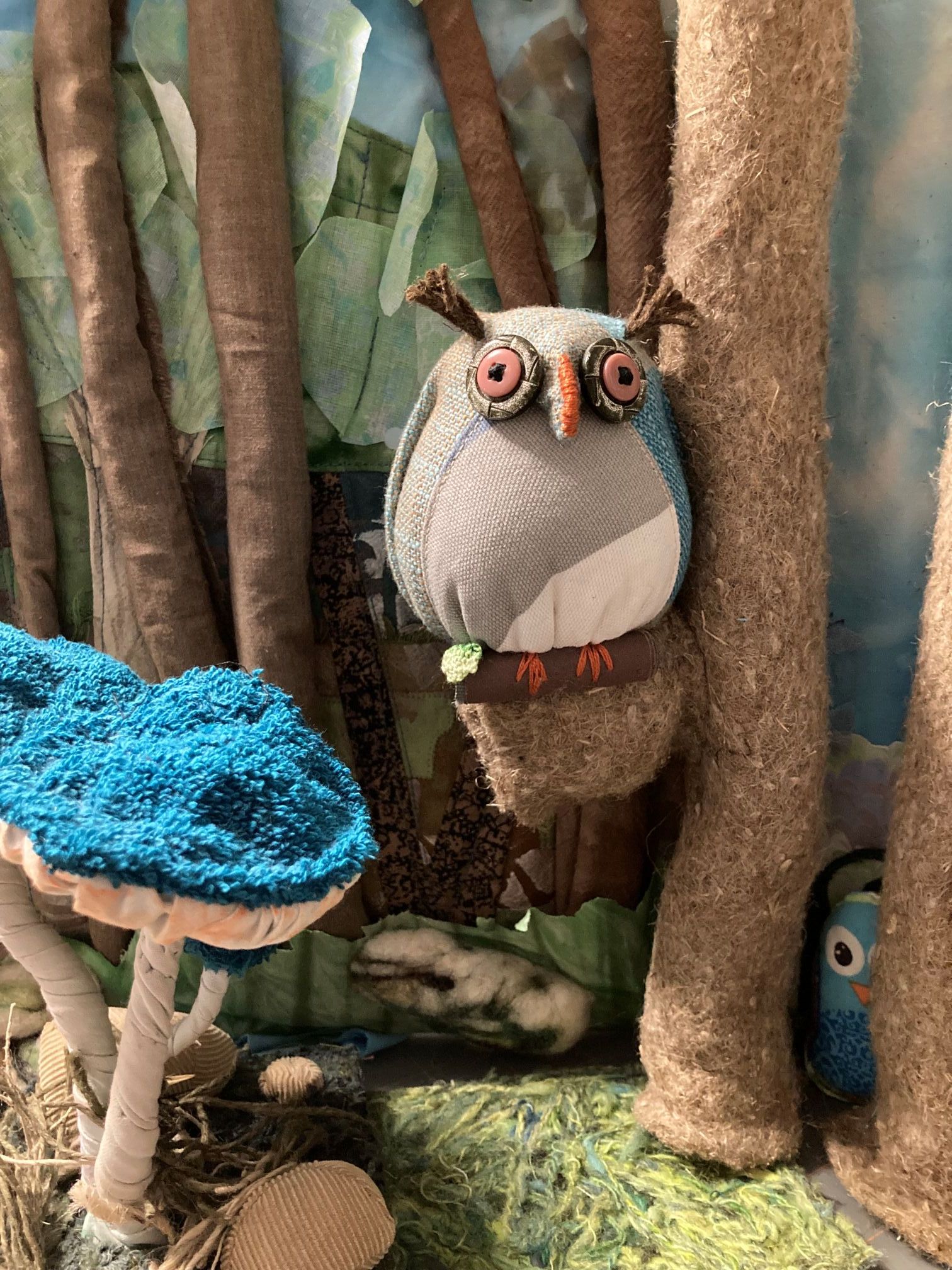 Espoon killan tilkkutyöntekijät juhlistavat 35-vuotista taivaltaan vaikuttavalla tekstiilinäyttelyllä, jonka teemana on metsän rauhoittava ja inspiroiva ympäristö.