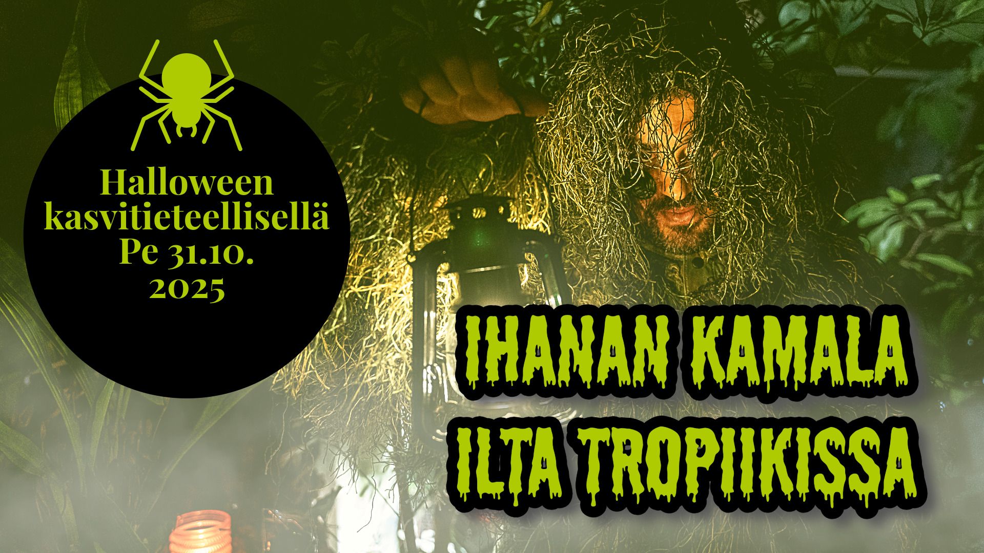 Kohtaa pelkosi ja astu hämyiseen tropiikkiin. Yhden illan ajaksi lumoava kasvitieteellinen puutarha muuttuu viidakoksi, jonne astuminen vaatii rohkeutta. Juhli halloweenia perinteisessä iltatapahtumassamme perjantaina 31.10.2025.