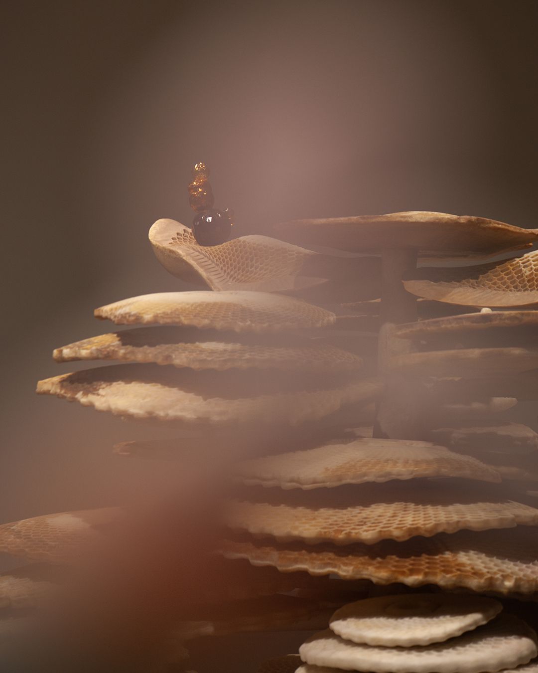 Marguerite Humeau muuntaa HAMin suuren kaarihallin mielikuvitukselliseksi maisemaksi, jossa luonnonmuodoista inspiroituneet veistokset heräävät henkiin valon ja äänen myötä. Teokset värähtelevät, erilaisten maailmoiden tahdissa, halki aikojen ja tilojen.