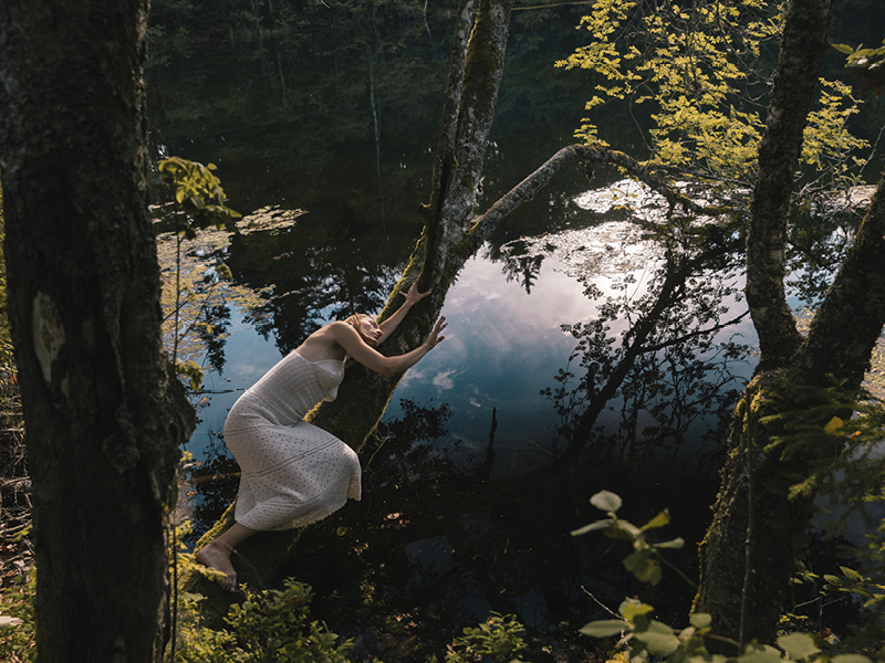 Performansseja puille -valokuvanäyttely pohtii ihmisen roolia ja sen ajallista kerrostumaa maisemassa valokuvan ja tanssin keinoin. Näyttelyn kuvia on kuvattu Varsinais-Suomen varhaisina aamuina kesällä 2025, kuunnellen puiden hiljaista kuoroa.