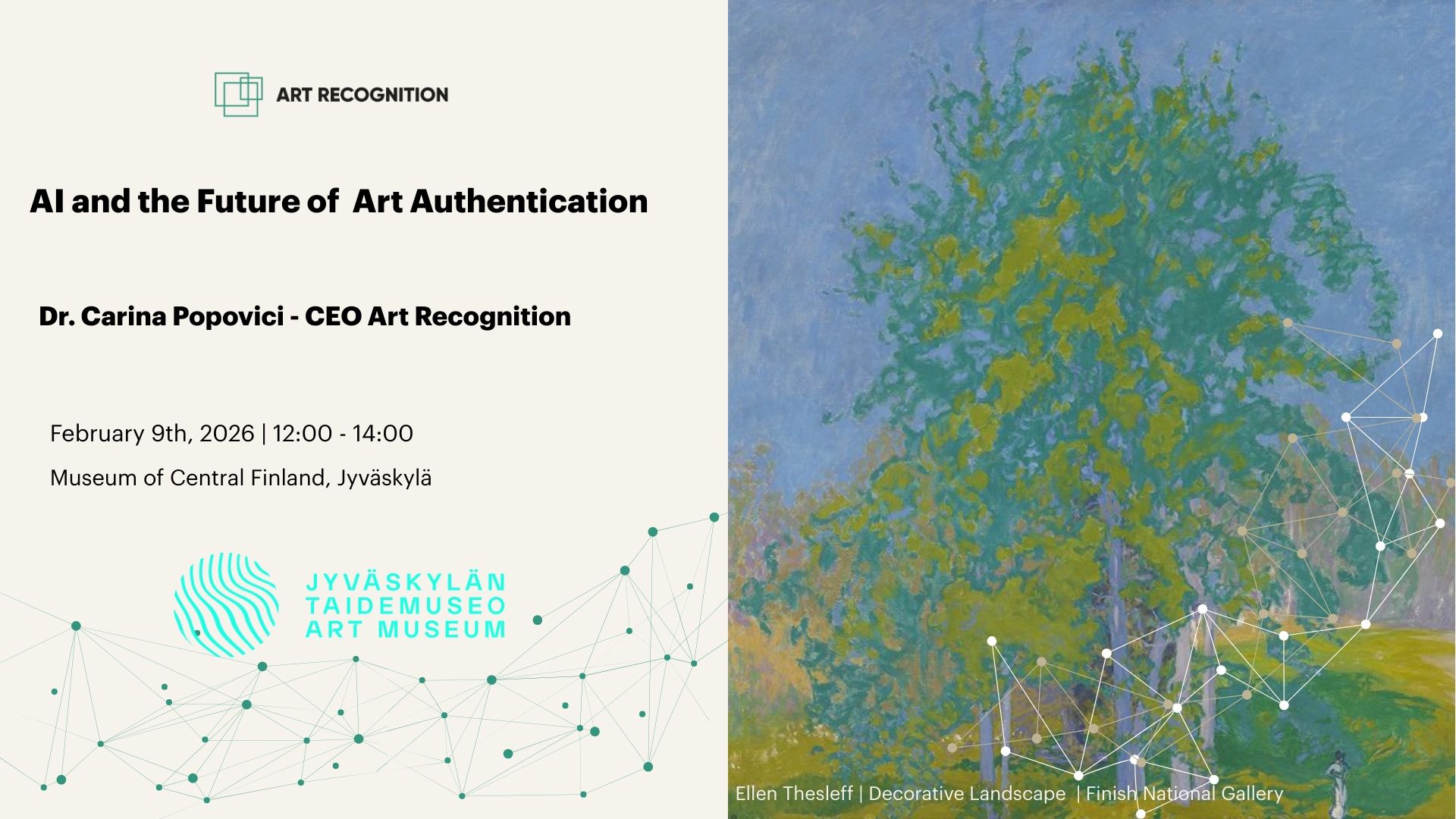 FT Carina Popovici, sveitsiläisen Art Recognition -yrityksen toimitusjohtaja pitää Jyväskylässä, Keski-Suomen museon luentosalissa, luennon tekoälyn käytöstä taideteosten aitouden tutkimisessa maanantaina 9.2.2026 klo 12–14.