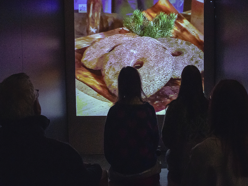Näyttelytilassa esitetään tämän kevään ajan Yleisradion vuonna 1990 tuottamaa lyhytelokuvaa petun valmistuksesta ja käytöstä. Pettua pöytään -elokuva siivittää katsojansa petun valmistuksen maailmaan ja sopiikin oivallisesti Ruokakulma näyttelytilassa esitettäväksi filmiksi.