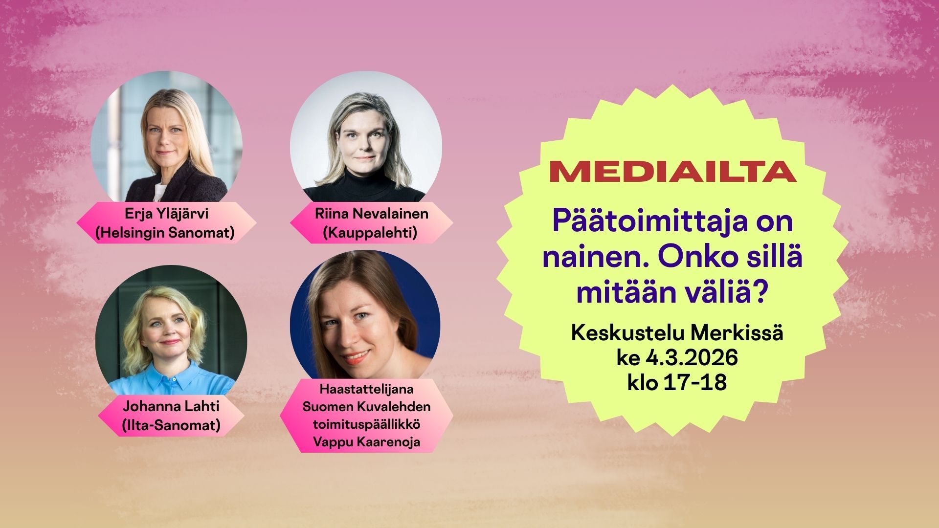 2.3.2026 - Mediailta: Päätoimittaja on nainen. Onko sillä mitään väliä?
