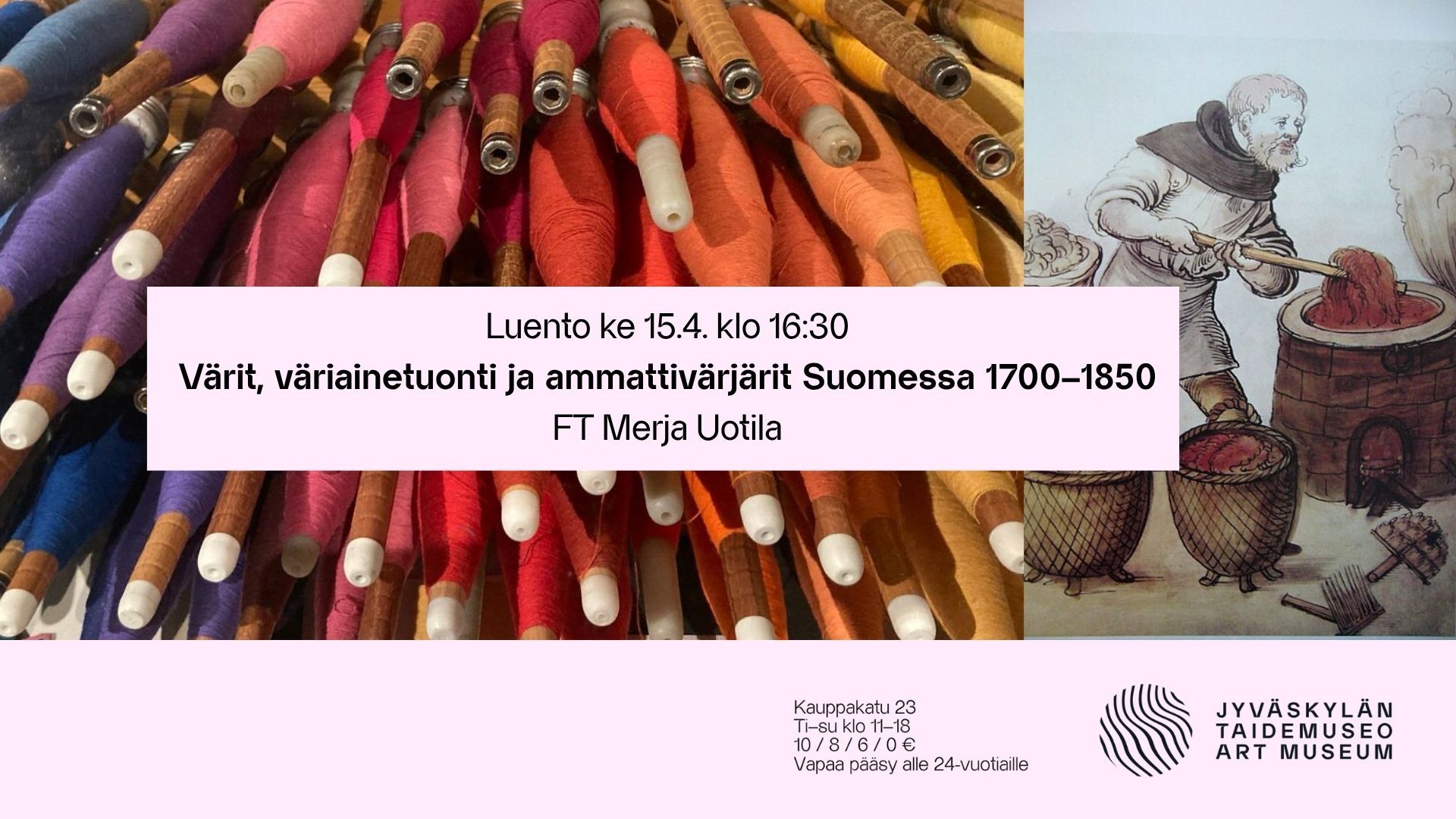 Luento liittyy VÄRI - Keskisuomalaisen taiteen kokoelmanäyttelyn oheistapahtumiin. VÄRI-näyttely on Jyväskylän taidemuseossa ja Aalto2-museokeskuksessa 24.1.–26.4.2026.
