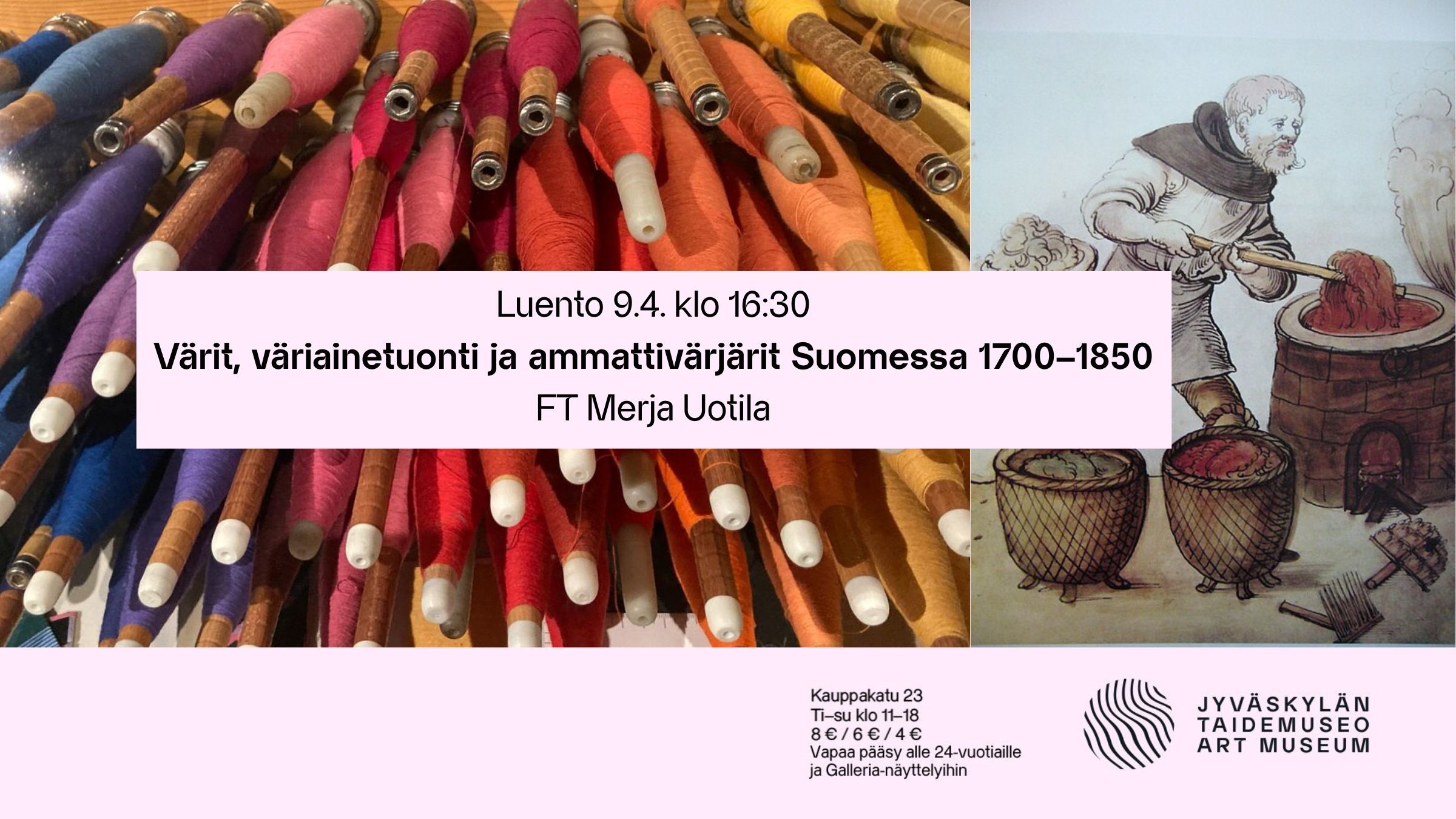 Luento liittyy VÄRI - Keskisuomalaisen taiteen kokoelmanäyttelyn oheistapahtumiin. VÄRI-näyttely on Jyväskylän taidemuseossa ja Aalto2-museokeskuksessa Keski-Suomen museon Taidehallissa 24.1.–26.4.2026.